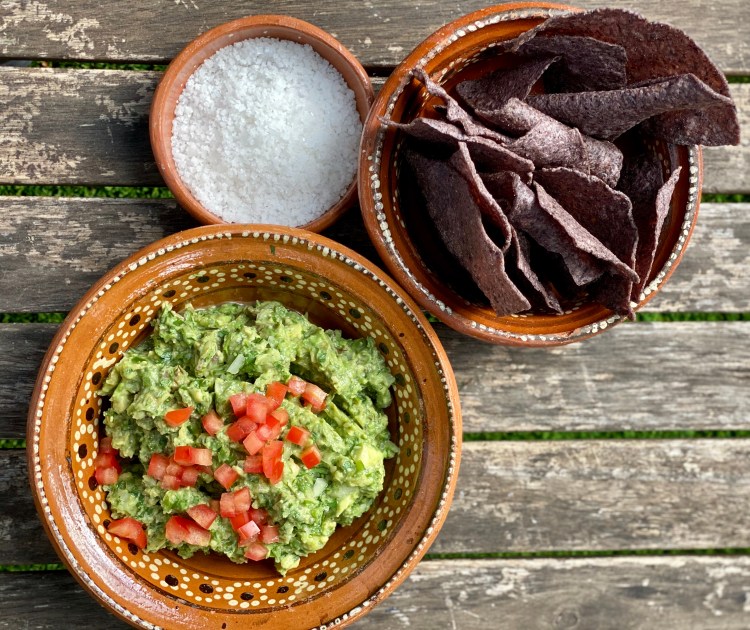 *INGREDIENTS 1/2 bunch coriander / cilantro 2 avocados 1/2 small onion juice of 2 lemons salt to taste chili to taste, can be green or red 1 small tomato Totopos or corn chips to accompany are welcome
