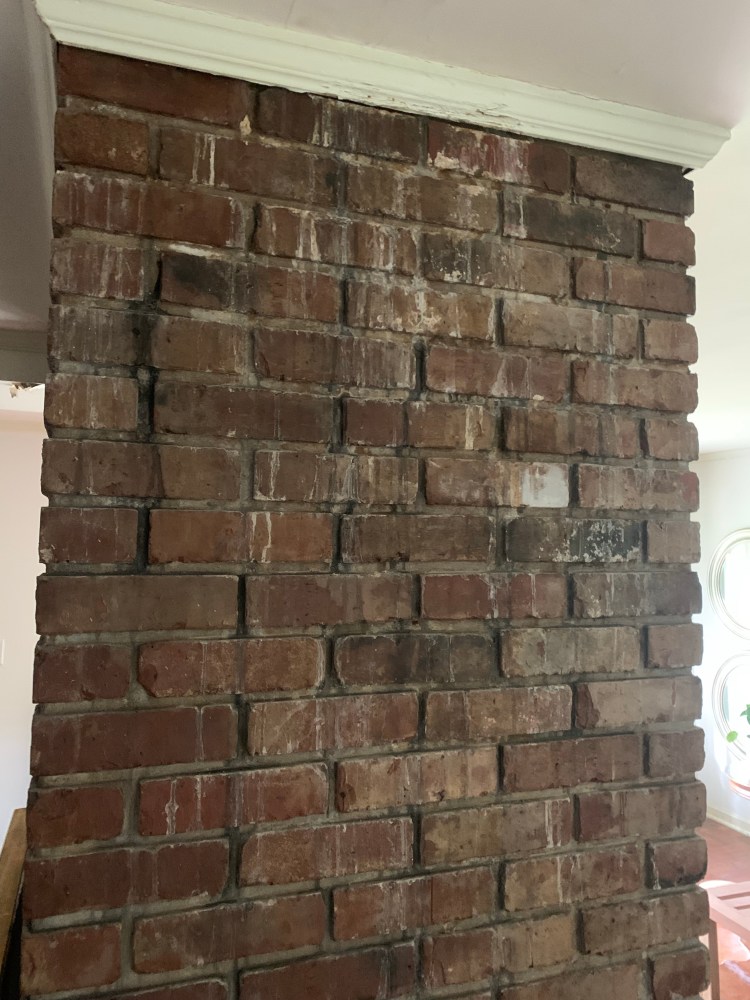 The beauty of this white wash is that you have 48 hours to decide if you like it or not. You could sponge of some of the pigment off to show more brick. You could add another layer, it’s so flexible. We decided just to do the one layer.