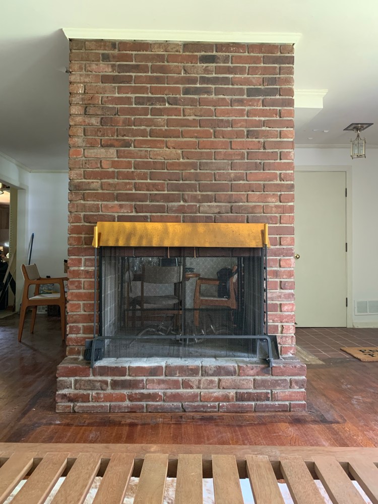 Another renovation update. This one is a quickie. In the Georgia house we have a 2 sided fire place. I can’t wait for cooler weather to start a fire in this baby! The fire place faces the dining room and part of the entry, where I have my favorite seating area.