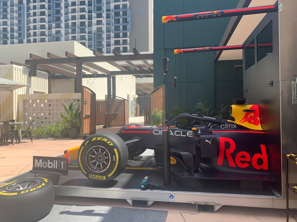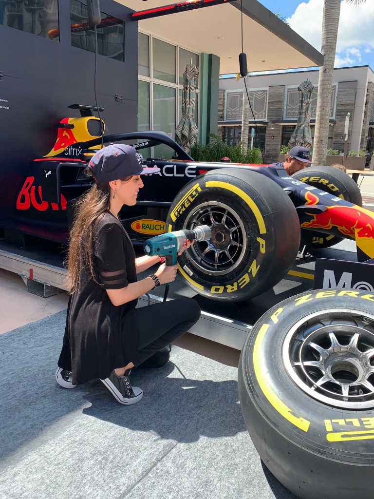 Since I was little I loved watching Formula 1 with my twin sister. I don’t remember how or why we started watching all the weekend races. But, I know we wouldn’t miss one. At that time my favorite was Senna, today I love Hamilton. So, when I found out that Red Bull Racing was going to bring their Pit Stop Challenge, along with a real racing car, to my job, I got super excited!