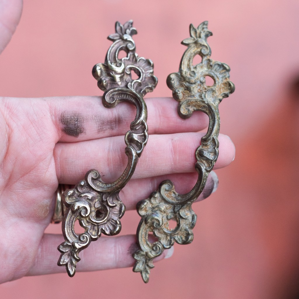 Then I’ll polycrylic for protection. The original drawer pulls were treated with Rub and Buff (such a funny name, it’s exactly what you do but maybe my mind is always in the gutter) in color Spanish Copper.
